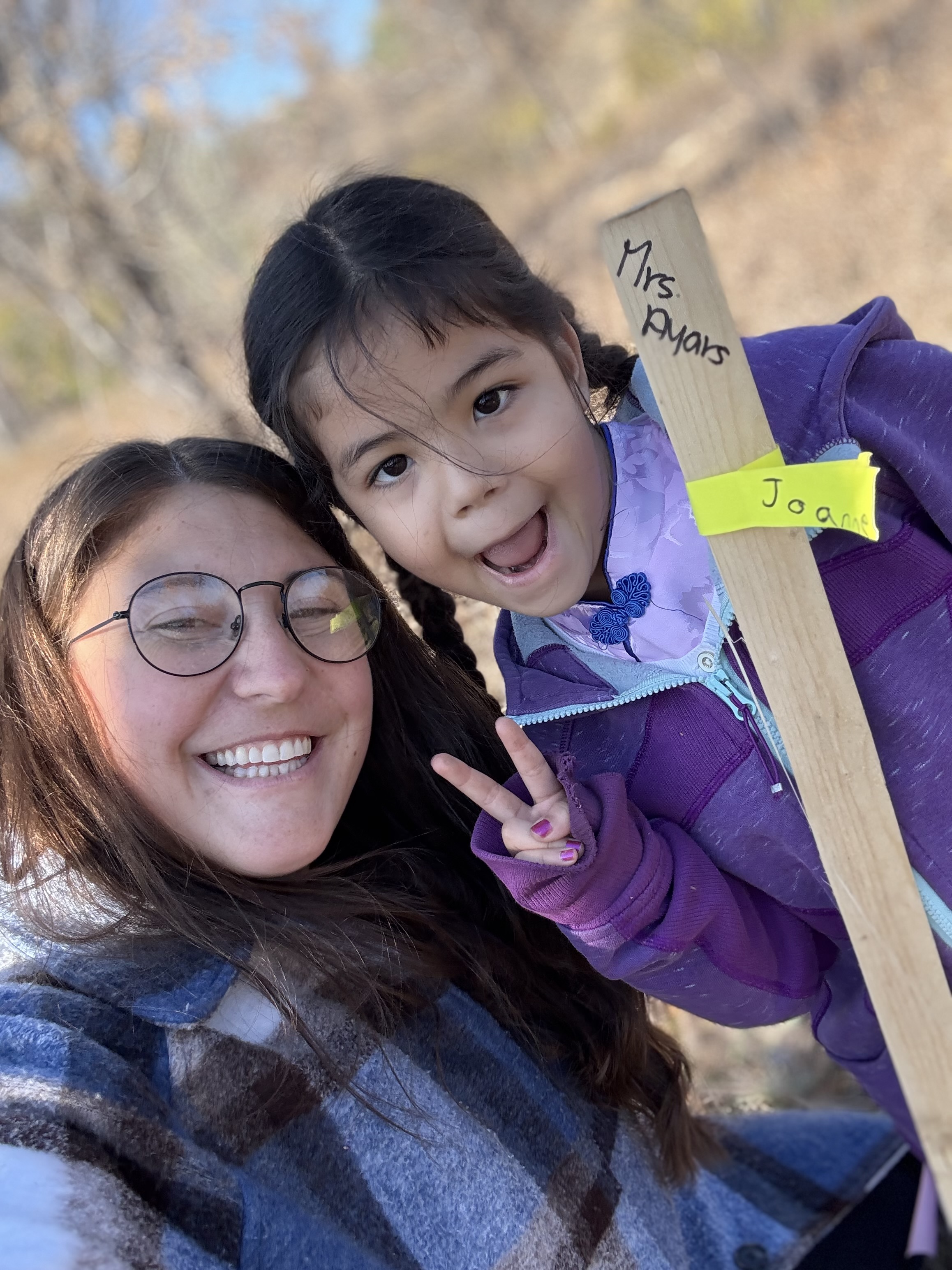 On October 17 our Sask DLC teachers took Kindergarten to Grade 8 students on a walk led by Sadi Rose Vaxvick, who is from Ochapowace First Nations, to Wellesley Park in Moose Jaw. Students talked about the history of the Wakamow Valley, which was home to a number of Indigenous groups, learned about the plants that inhabit the area, participated in some medicine picking and even got to plant a tree.